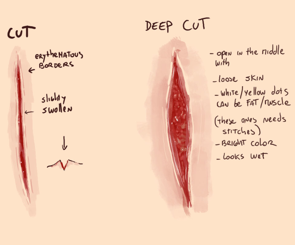 Learn about the signs that a wound needs a doctor's help and what to do before you go. The cut is deep and the edges of the skin are jagged or parted. Sep 25, 2018 · whether a cut needs stitches depends on factors such as where the cut is and how deep it is. Deeper cuts also require an examination to check for additional damage to tissue, tendons and even bones underneath. Some minor wounds bleed more than others, which can make it difficult to know when to get stitches or.